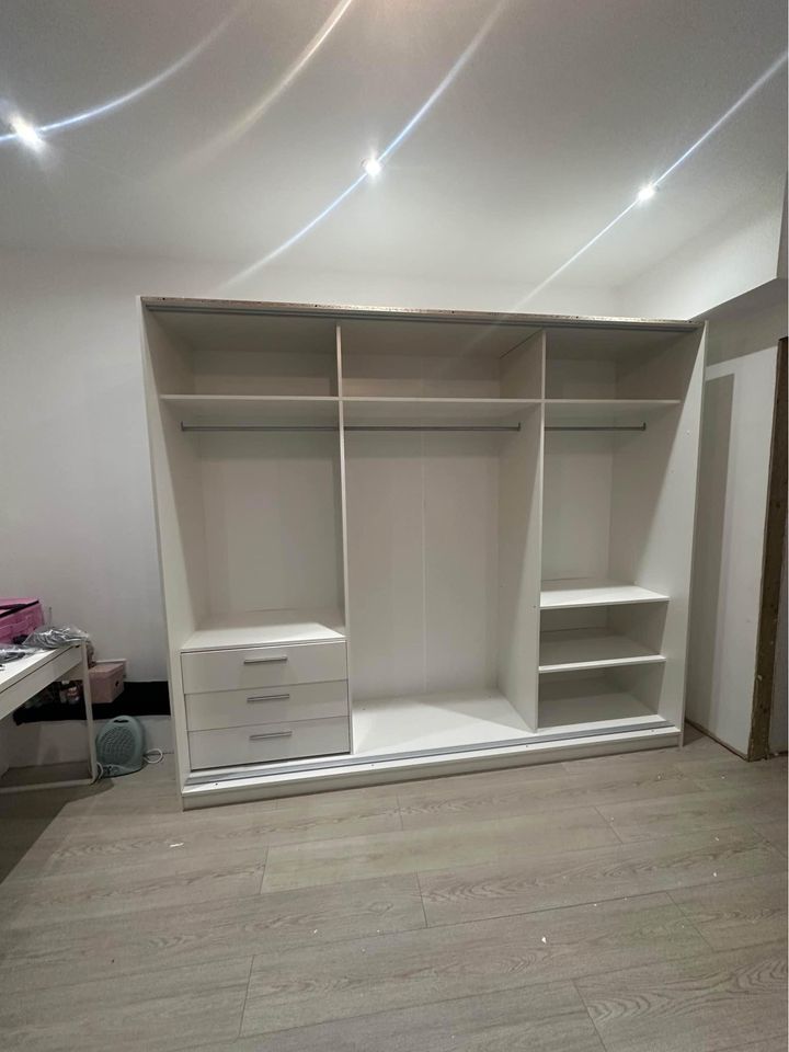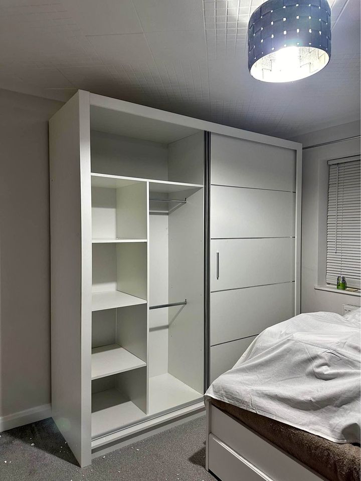 Product description Sliding double doors help to save space in your room Minimal, modern design looks stylish with most décor styles Plenty of room to keep all your clothes & shoes tidy and neat Freestanding so you can rearrange rooms or take it with you if you move Lyon Mirrored Bedroom Sliding Door Wardrobes Is your current wardrobe looking a bit tired? Or perhaps your clothing collection has outgrown it? Maybe you've just moved house or moved to uni and realized your new place doesn't have built-in wardrobes? No need to panic - the Lyon Double Sliding Door Wardrobe is here to solve all your clothing storage problems! A minimalist and modern design, this spacious mirrored wardrobe will fit with most décor themes and look good in any room. Each door of this sleek and stylish wardrobe has a mirror built into the front so you can check to make sure your outfit doesn't clash. The sliding doors help to preserve precious floor space, perfect for smaller spaces that a hinged-door wardrobe would encroach on and inside has plenty of storage space including hanging rails and shelves to optimise the space. We have all rummaged through clothing in a wardrobe, getting frustrated that our shadow keeps getting in the way of seeing what's inside. Well, the Nicole Wardrobe has a solution for that: at the top of this sliding door wardrobe is an LED light to help you locate exactly what you're looking for without the lack of light getting in your way. So upgrade your space today and make your life easier and more convenient with this double-mirrored wardrobe! Features: Beautiful 2 and 3-door full mirror sliding wardrobe, plenty of space for hanging and shelves. Brand new design with elegant 16mm matt finish chipboard available in White, Grey, Black, and Oak/Sonoma Colour. 120cm Wardrobe includes: 6 Shelves 2 Hangings 2 Mirror Sliding Doors Good Capacity for both hanging and shelving Dimensions: Width: 120cm Height: 216cm Depth: 62cm 150cm Wardrobe includes: 6 Shelves 2 Hangings 2 Mirror Sliding Doors Good Capacity for both hanging and shelving Dimensions: Width: 150cm Height: 216cm Depth: 62cm 180cm Wardrobe includes: 6 Shelves 2 Hangings 2 Mirror Sliding Doors Good Capacity for both hanging and shelving Dimensions: Width: 180cm Height: 216cm Depth: 62cm 203cm Wardrobe includes: 10 Shelves 4 Hangings 2 Mirror Sliding Doors Good Capacity for both hanging and shelving Dimensions:- Width: 203cm Height: 216cm Depth: 62cm 250cm Wardrobe includes: 8 Shelves 3 Hangings 3 Mirror Sliding Doors 3Drawers inside the wardrobe Good Capacity for both hanging and shelving Dimensions: Width: 250cm Height: 216cm Depth: 62cm Features Colour: White Door Type: Sliding Designs: Modern Number of Doors: 2 Assembly: Home Assembly Required Number of Drawers: 0 Features: Shelves, Hanging Rail, Mirrored, Glass Doors Material: Wood Width: 180cm Type: Sliding, Mirrored Safety Warning Always follow the assembly instructions carefully. Keep hands and fingers away from the sliding doors during operation to prevent injury. Do not overload the wardrobe as it may tip over. Always use appropriate safety gear when assembling.